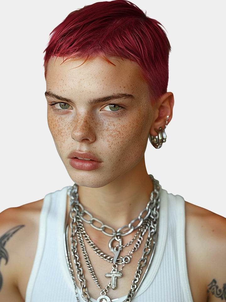 Mézclalo con otros tonos de rojo como Ruby Rouge y Fire para crear un rojo multitonal. El negro es perfecto para crear una raíz de sombra que se mezcla con Vermillion en las puntas. Añade un toque de plata para crear un rojo ahumado intenso.
